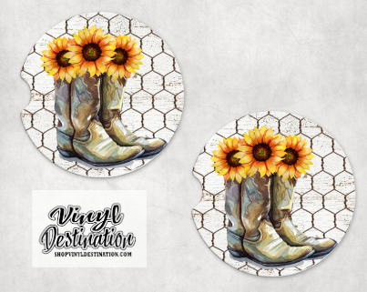 COWBOY BOOTS AND SUNFLOWERS CAR COASTERS (SET OF 2)