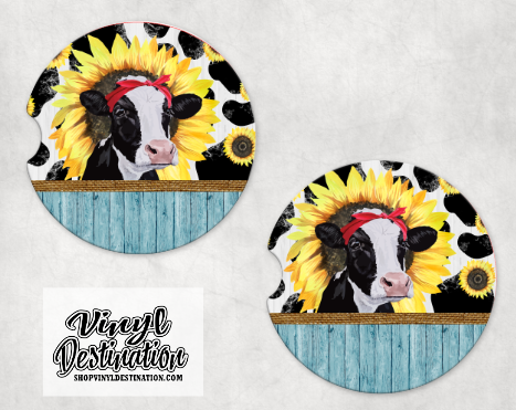 COW AND SUNFLOWERS CAR COASTERS (SET OF 2)