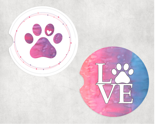 PINK COLOR PAW SANDSTONE CAR COASTERS (SET OF 2)