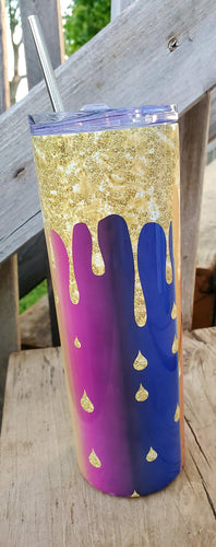 RAINBOW GOLD GLITTER DRIP TUMBLER