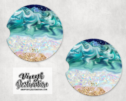 BEACH THEME SWIRL CAR COASTERS (SET OF 2)